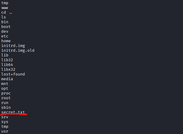 Daha sonra dizinler arasında gezerek secret.txt içeriğini okuyorum ve çözümü bitiriyorum.
